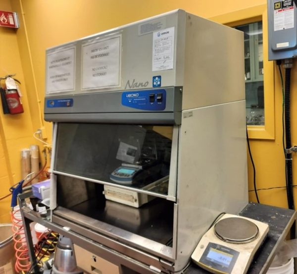 3-foot fume hood for handling powders and nanoparticles.