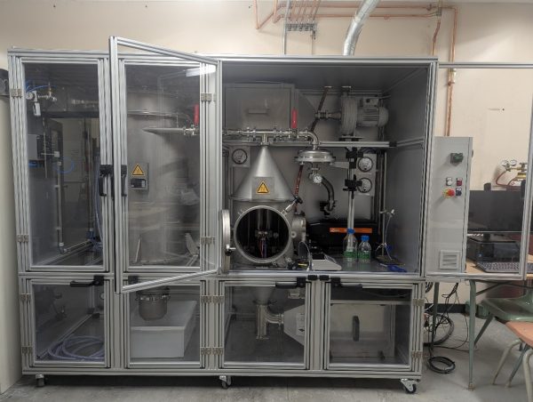 Le LS-FSP est conçu pour la synthèse de poudres nanométriques par pyrolyse en flamme. Il permet un contrôle précis des conditions de combustion et de la formation des particules, et peut être configuré pour des études fondamentales (test de plusieurs compositions et synthèses) ou pour la production de poudres à petite échelle (jusqu’à des kilogrammes).